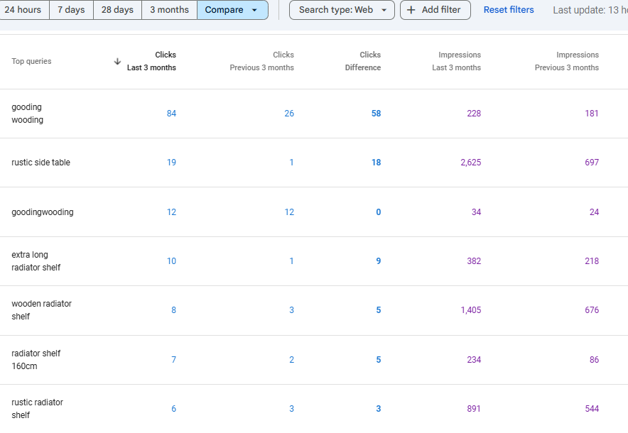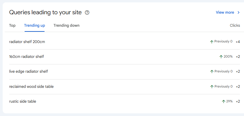 Many core product pages were underperforming for high-intent terms such as handmade radiator shelves and reclaimed wood furniture UK. Product descriptions were short, lacking search depth and user-focused content, while category pages were missing proper internal linking and metadata.